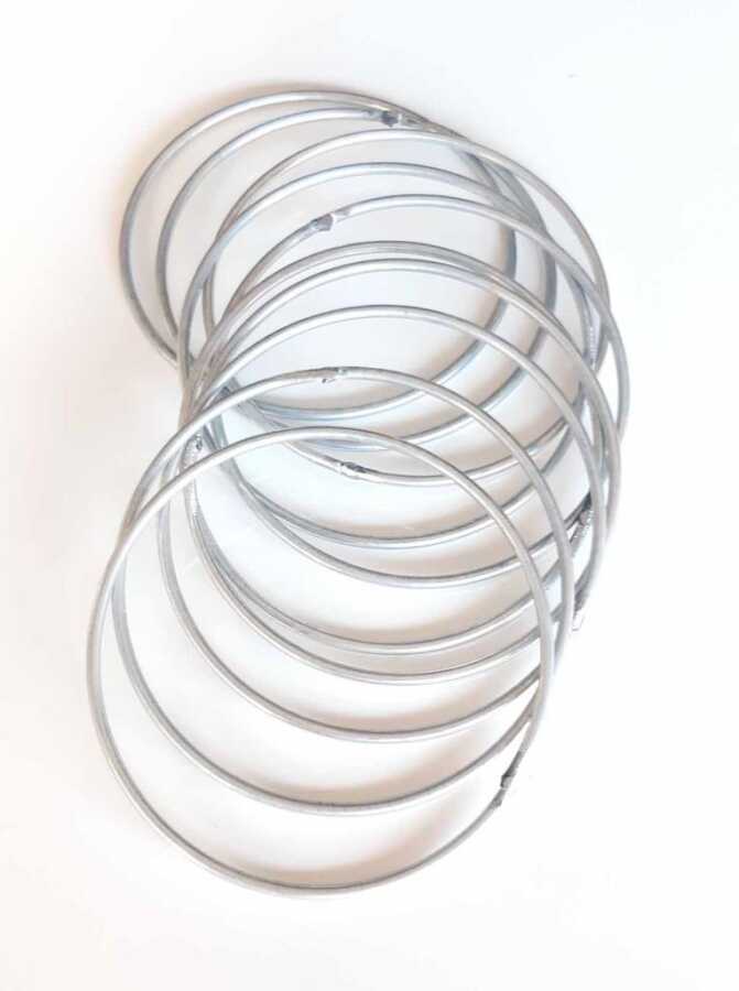 Bir adet fiyatıdır. Yuvarlak metal tel. Bağlantı noktaları sabitlenmiştir. Ölçü Dış Çapıdır Düş kapanı halkası, (dream catcher) olarak bilinmektedir. Hobi ve dekoratif olarak kullanılır. Makreme işlerinde tercih edilir.