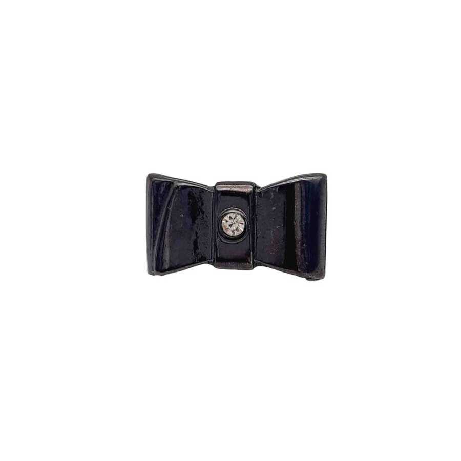 en: 1,5 cm boy: 3,5cm ortası taşlı fiyonk şeklinde plaka süs Füme Fiyonk Taşlı Plaka Süsü ayaklarından örgüye geçirilip içeriden ayaklar bükülerek örgüye sabitlenir.