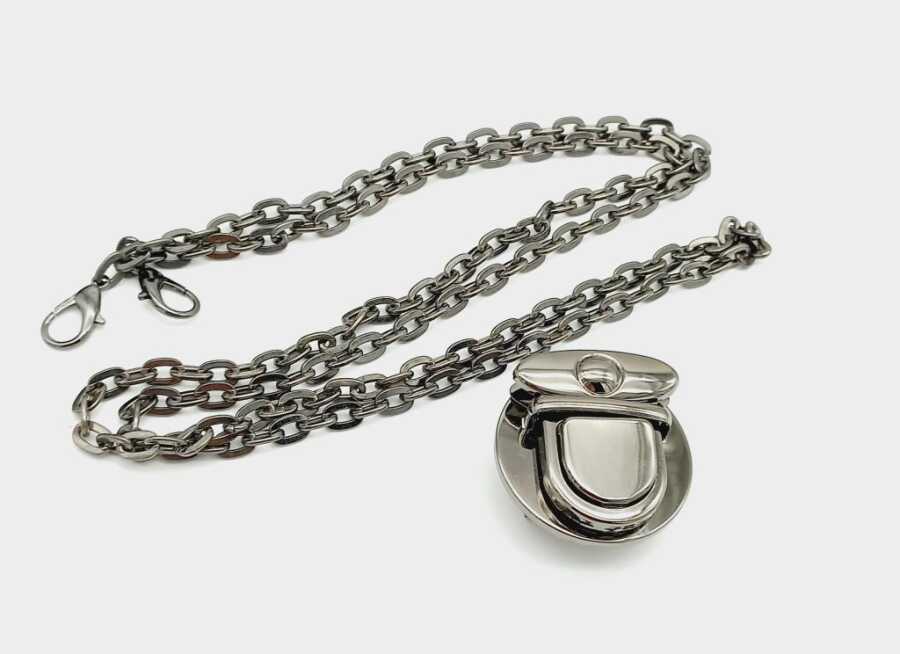 Angel Çanta Aksesuar Füme Renk Kancalı Düz Zincir Kilit Set