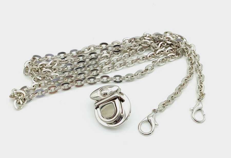 Angel Çanta Aksesuar Gümüş Renk Kancalı Düz Zincir Kilit Set