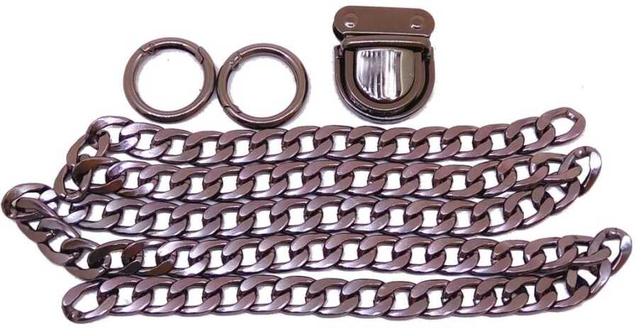 Zincir 1 metredir.  Daha uzun satın almak isterseniz  zincirler kategorisinden istediğiniz uzunlukta zincir, kilit kategorisinden kilit, halka kategorisinden halka seçerek set oluşturabilirsiniz.