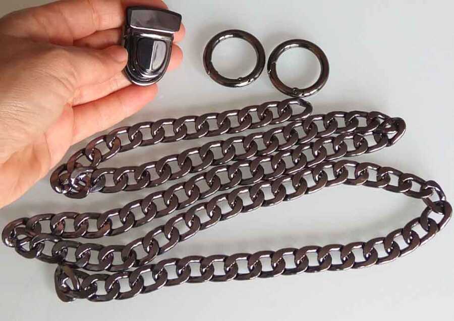 Zincir 1 metredir.  Daha uzun satın almak isterseniz  zincirler kategorisinden istediğiniz uzunlukta zincir, kilit kategorisinden kilit, halka kategorisinden halka seçerek set oluşturabilirsiniz.