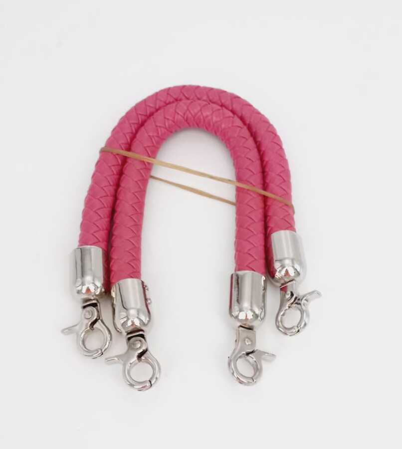 Angel Çanta Aksesuar Fuşya Kısa Örme Çanta Sapı Gümüş Metal