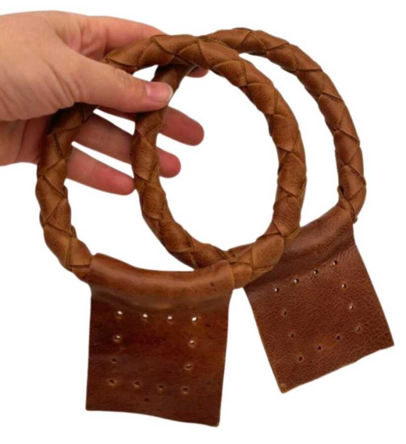 Angel Çanta Aksesuar Gerçek Deri 13 cm Nova Yuvarlak Model Taba Renk Çift Çanta Sapı