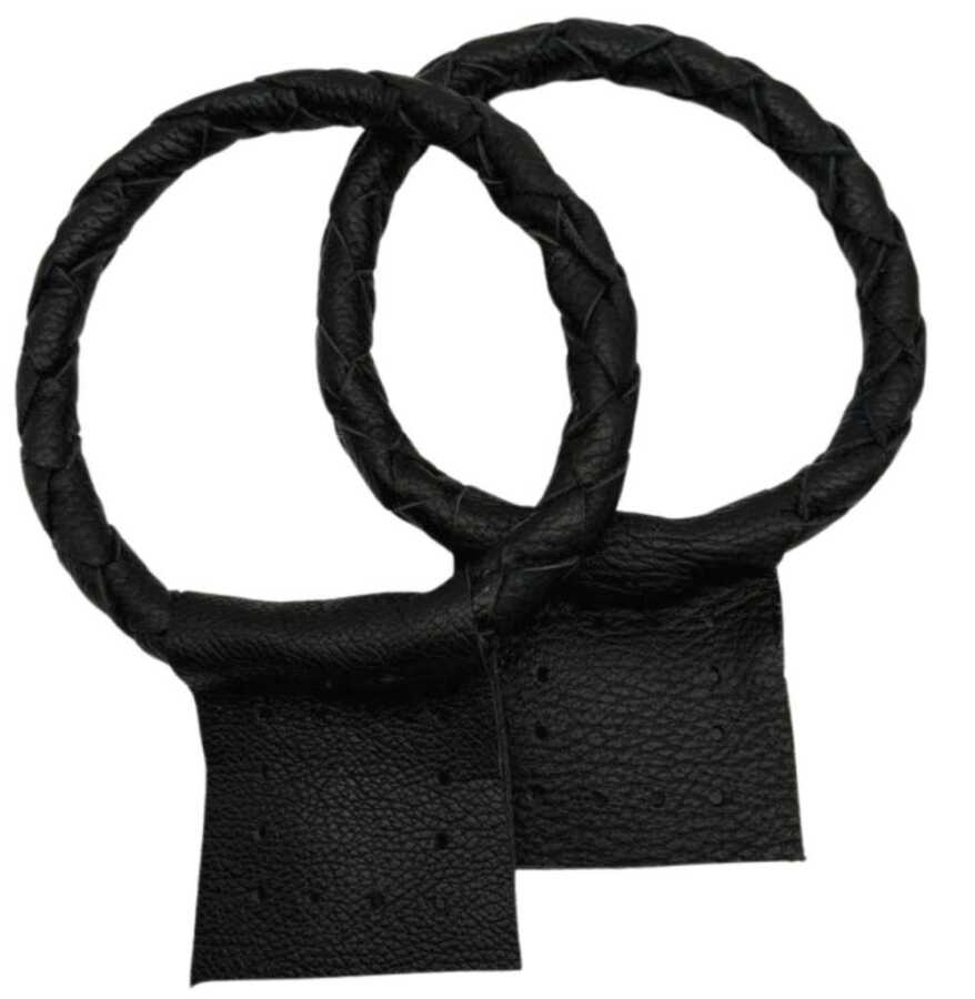 Angel Çanta Aksesuar Gerçek Deri 13 cm Nova Yuvarlak Model Siyah Renk Çift Çanta Sapı