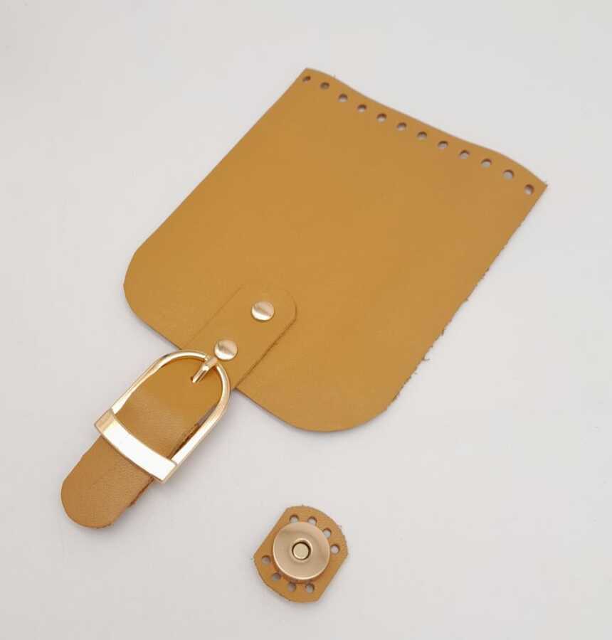 Angel Çanta Aksesuar Gerçek Deri 21x12 cm Hardal Renk Çanta Kapağı Light Gold Metalli