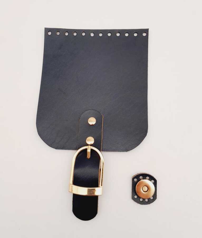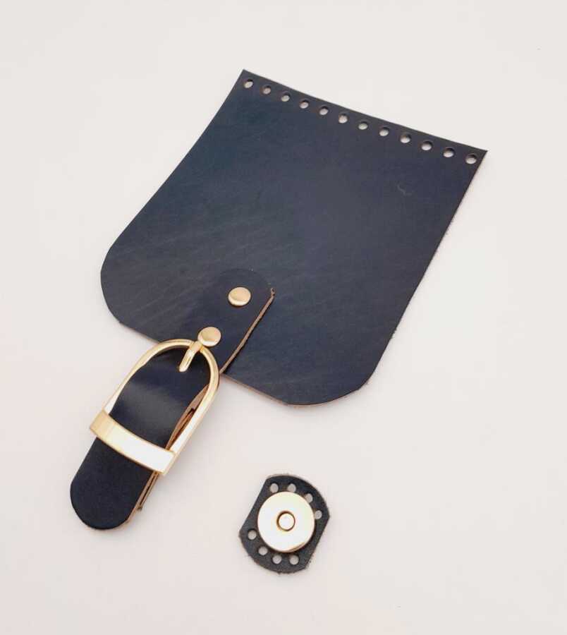 Angel Çanta Aksesuar Gerçek Deri 21x12 cm Lacivert Renk Çanta Kapağı Light Gold Metalli