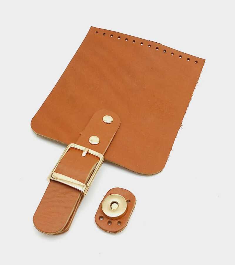Angel Çanta Aksesuar Gerçek Deri 21x12 cm Taba Renk Çanta Kapağı Light Gold Metalli