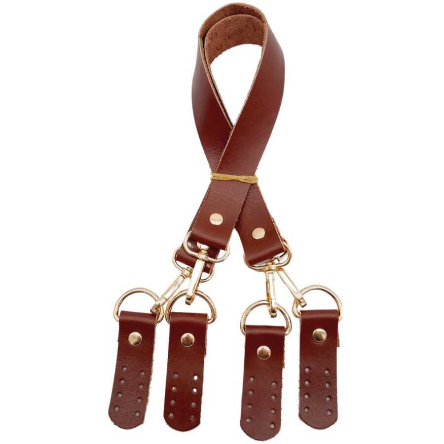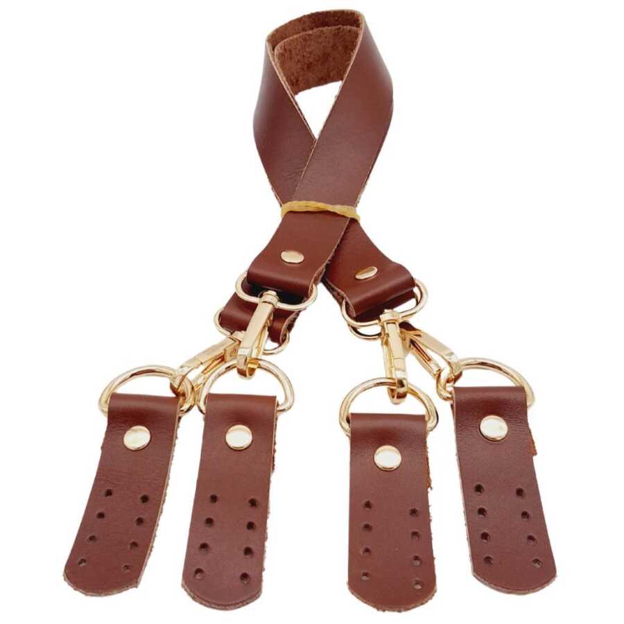 Angel Çanta Aksesuar Gerçek Deri 55 cm Misu Model Çift Sap Kızıl Kahve Renk Light Gold Metal