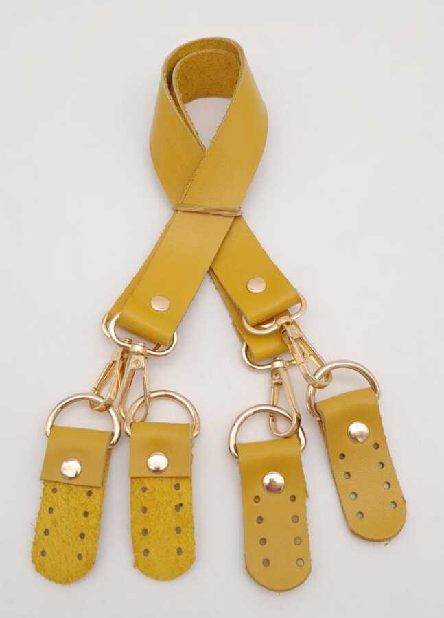 Angel Çanta Aksesuar Gerçek Deri 55 Cm Misu Model Çift Sap Limon Küfü Renk Light Gold Metal