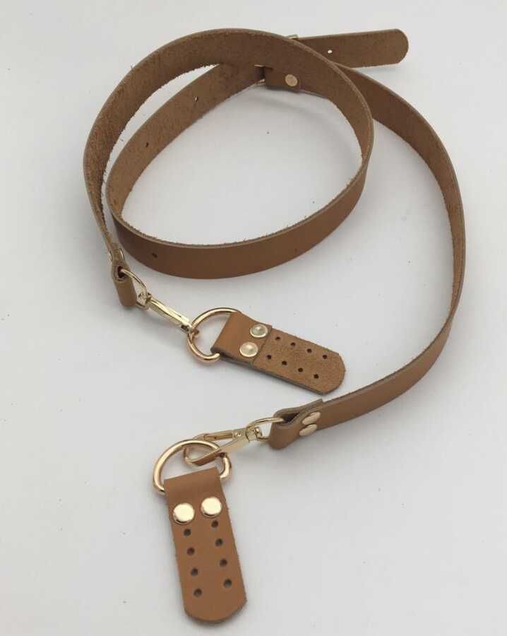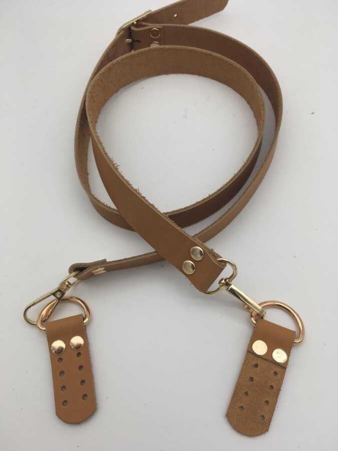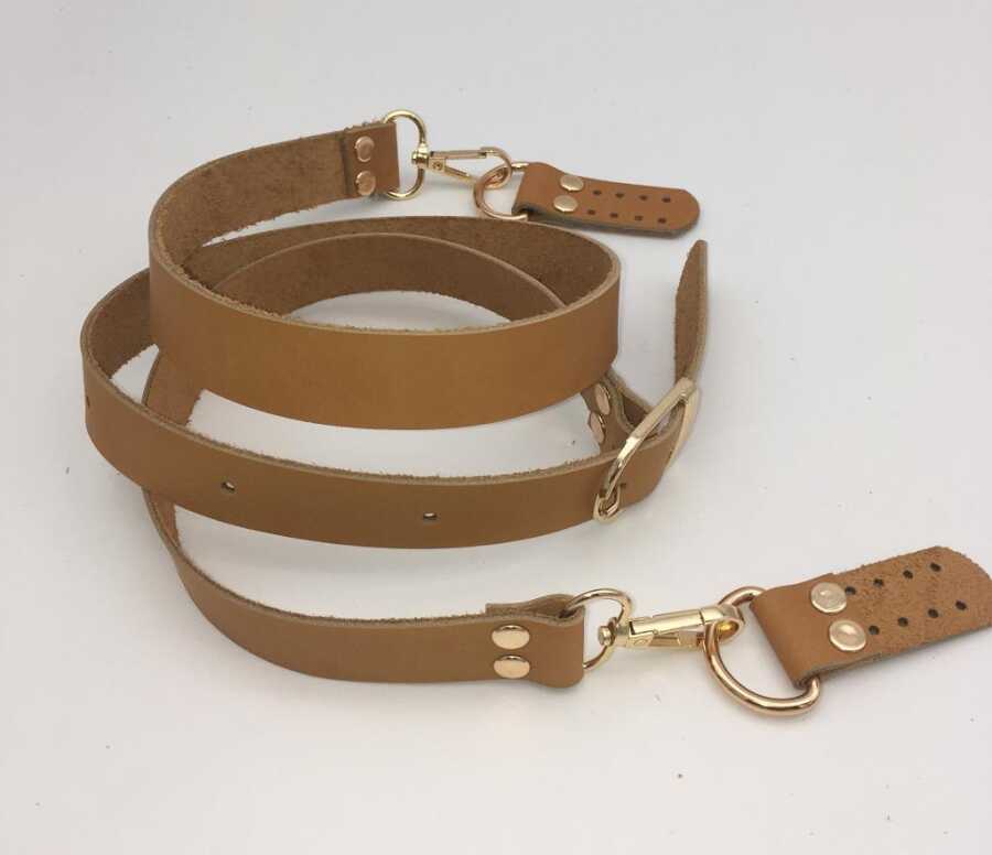 Angel Çanta Aksesuar Gerçek Deri Ayarlı Uzun Sap 2.3X130 Açık Taba Light Gold Metal