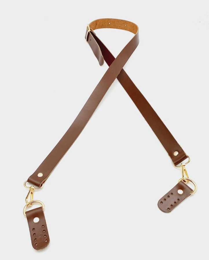 Angel Çanta Aksesuar Gerçek Deri Ayarlı Uzun Sap 2.3X130 Kızıl Kahve Light Gold Metalli