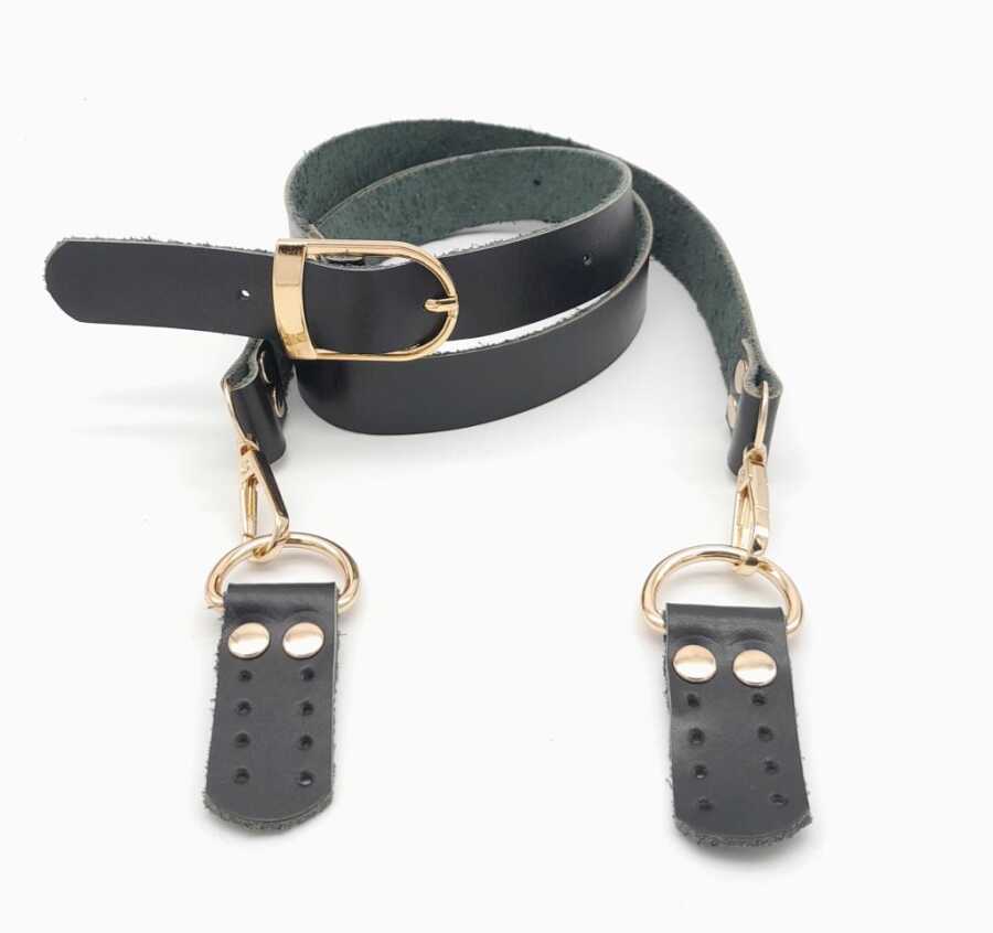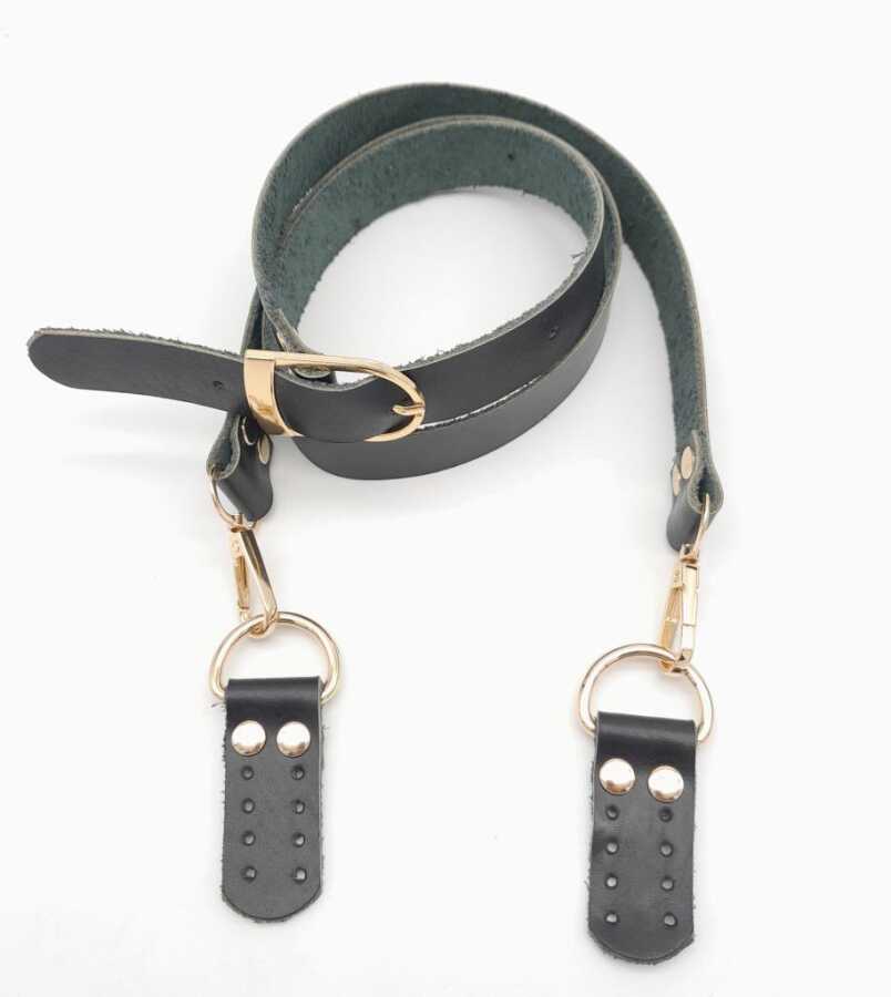 Angel Çanta Aksesuar Gerçek Deri Ayarlı Uzun Sap 2.3X130 Siyah Light Gold Metalli