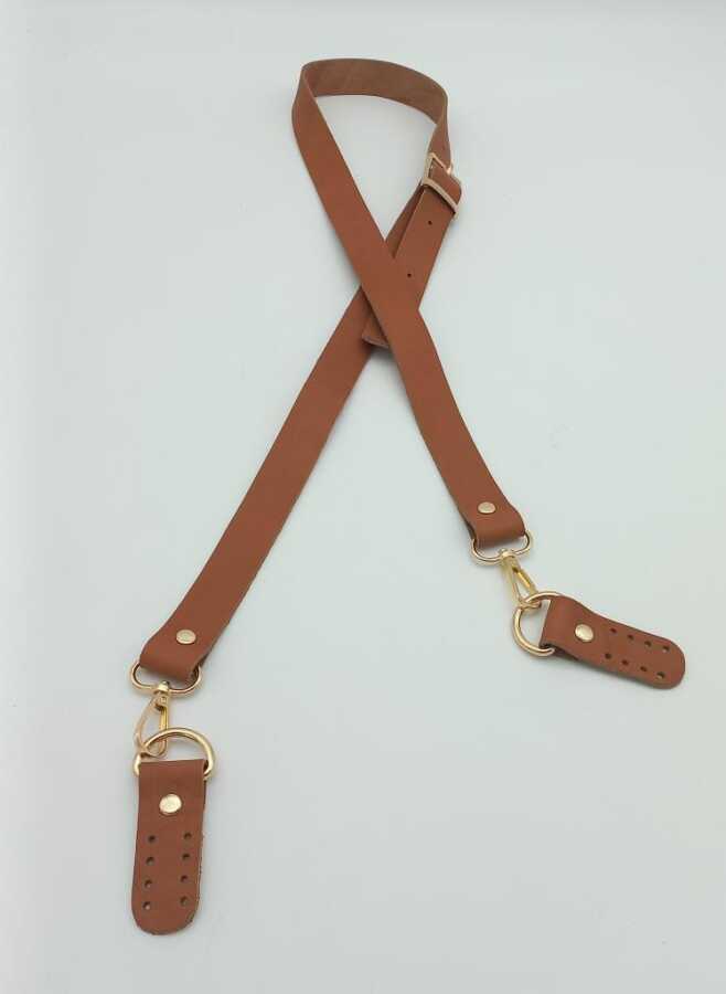 Angel Çanta Aksesuar Gerçek Deri Ayarlı Uzun Sap 2.3X130 Taba Light Gold Metalli