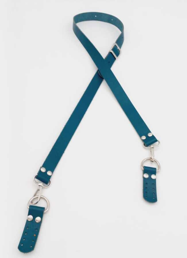 Angel Çanta Aksesuar Gerçek Deri Ayarlı Uzun Sap 2.3X130 Turkuaz Gümüş Metalli