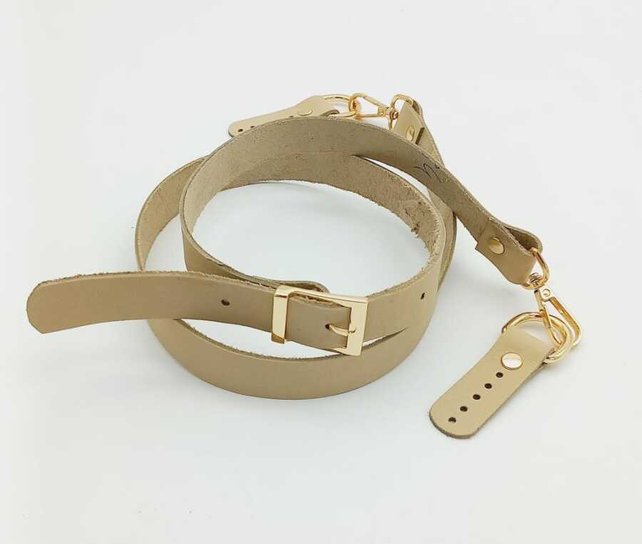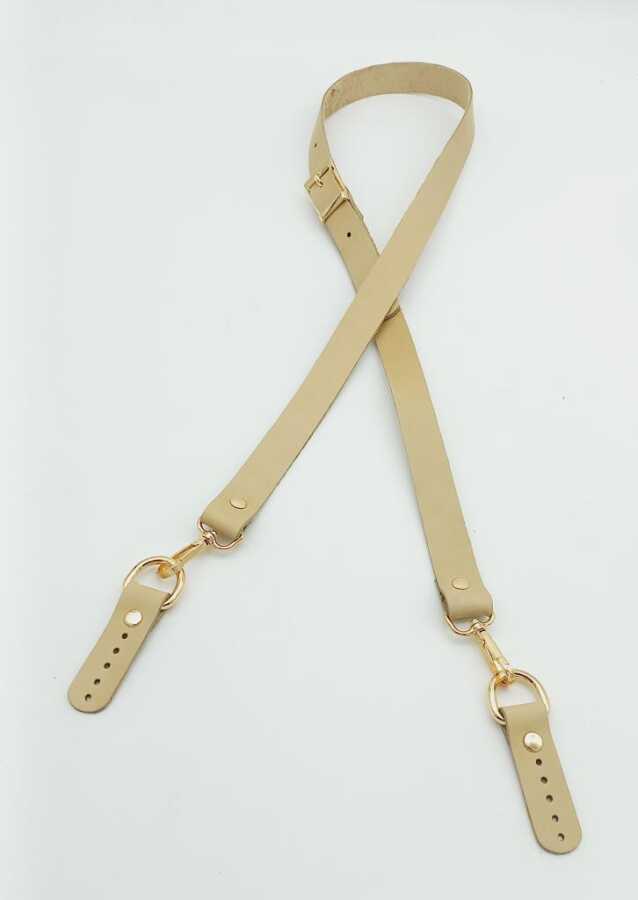 Angel Çanta Aksesuar Gerçek Deri Ayarlı Uzun Sap 2X130 Ham (Doğal) Light Gold Metalli