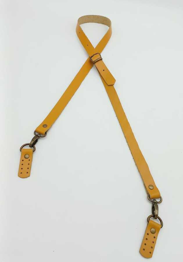 Angel Çanta Aksesuar Gerçek Deri Ayarlı Uzun Sap 2X130 Hardal Antik Metalli