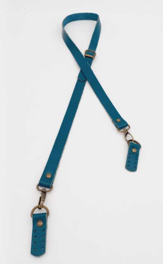 Angel Çanta Aksesuar Gerçek Deri Ayarlı Uzun Sap 2X130 Turkuaz Antik Metalli