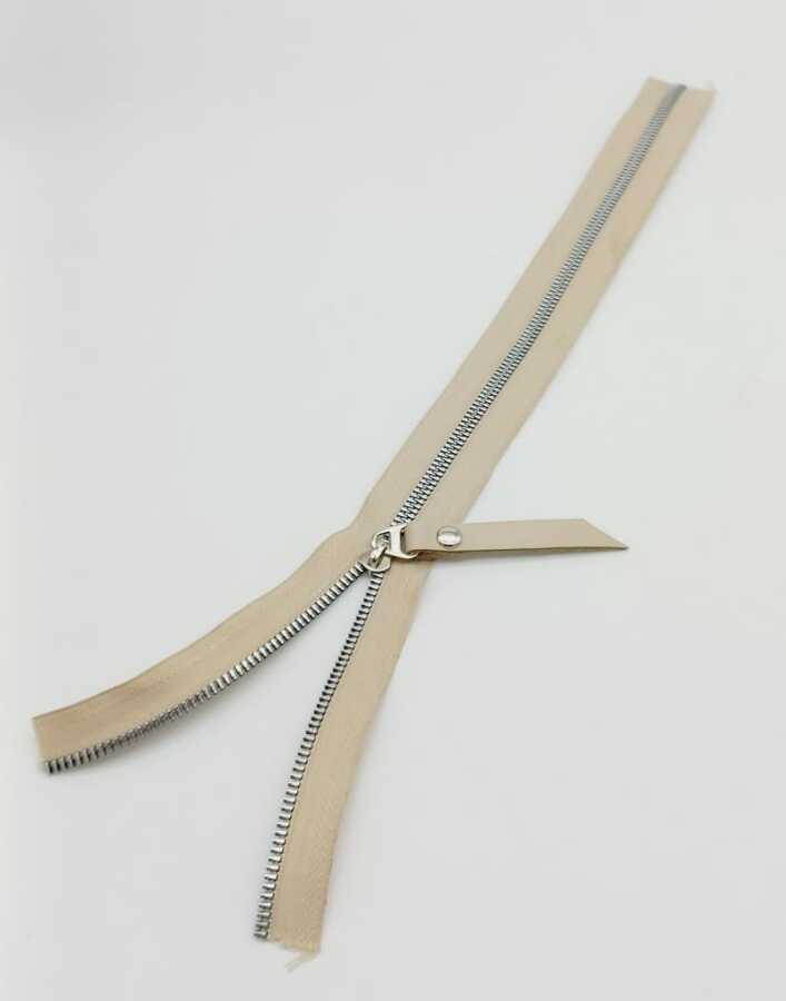 Angel Çanta Aksesuar Gerçek Deri Başlıklı Bej Fermuar 40 Cm Gümüş Metal