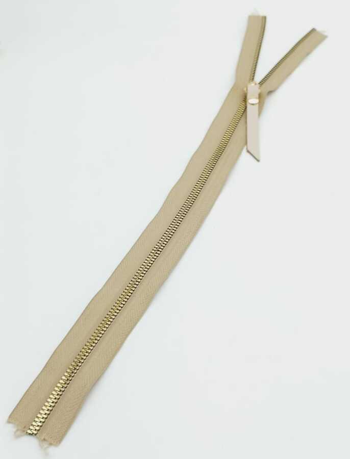 Angel Çanta Aksesuar Gerçek Deri Başlıklı Bej Fermuar 40 Cm Light Gold Metal