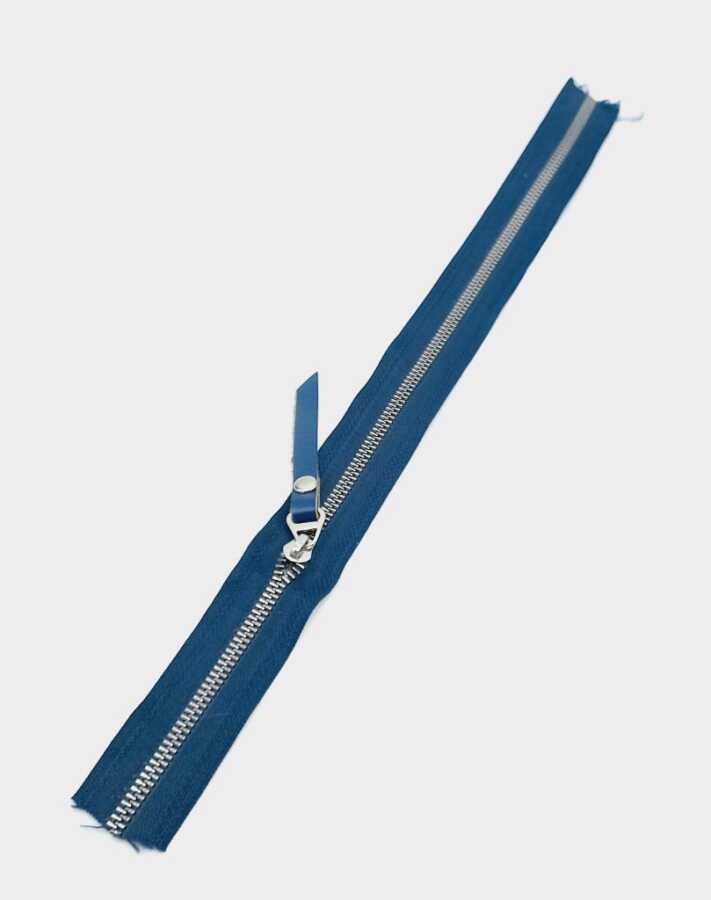 Angel Çanta Aksesuar Gerçek Deri Başlıklı Lacivert Fermuar 40 Cm Gümüş Metal