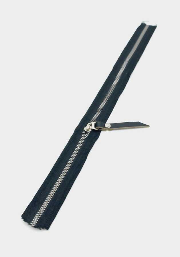 Angel Çanta Aksesuar Gerçek Deri Başlıklı Siyah Fermuar 40 Cm Gümüş Metal