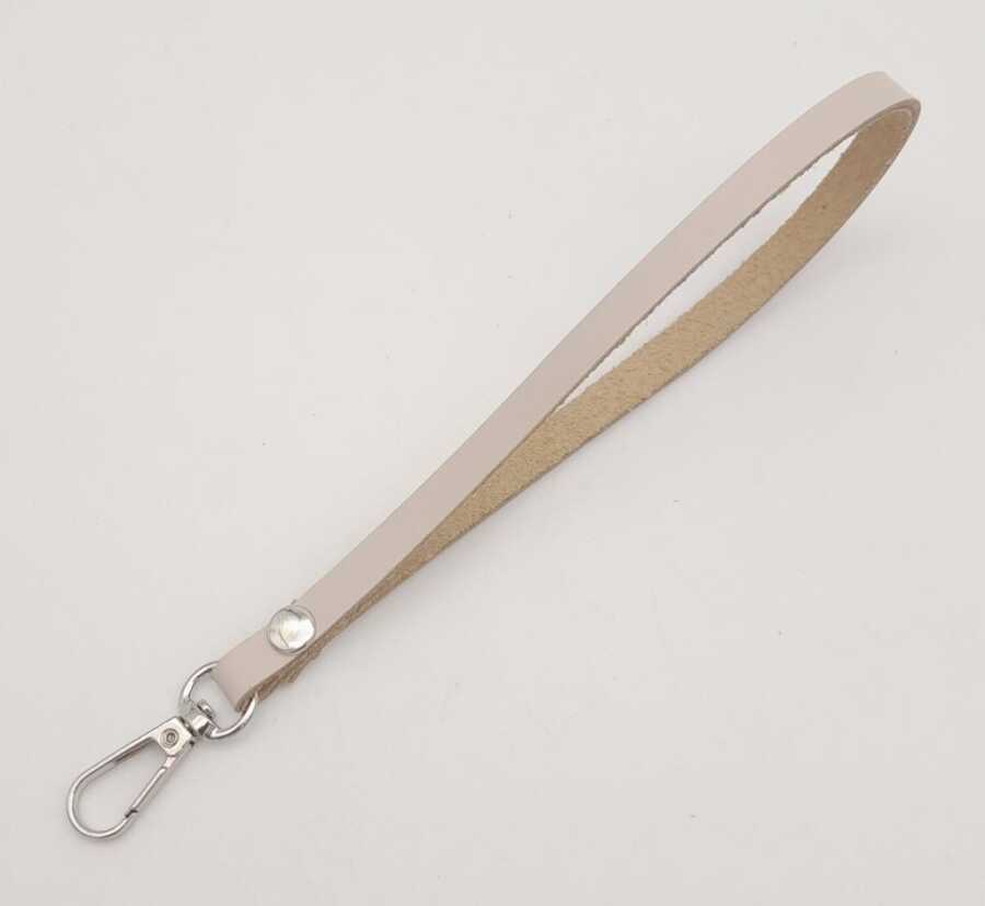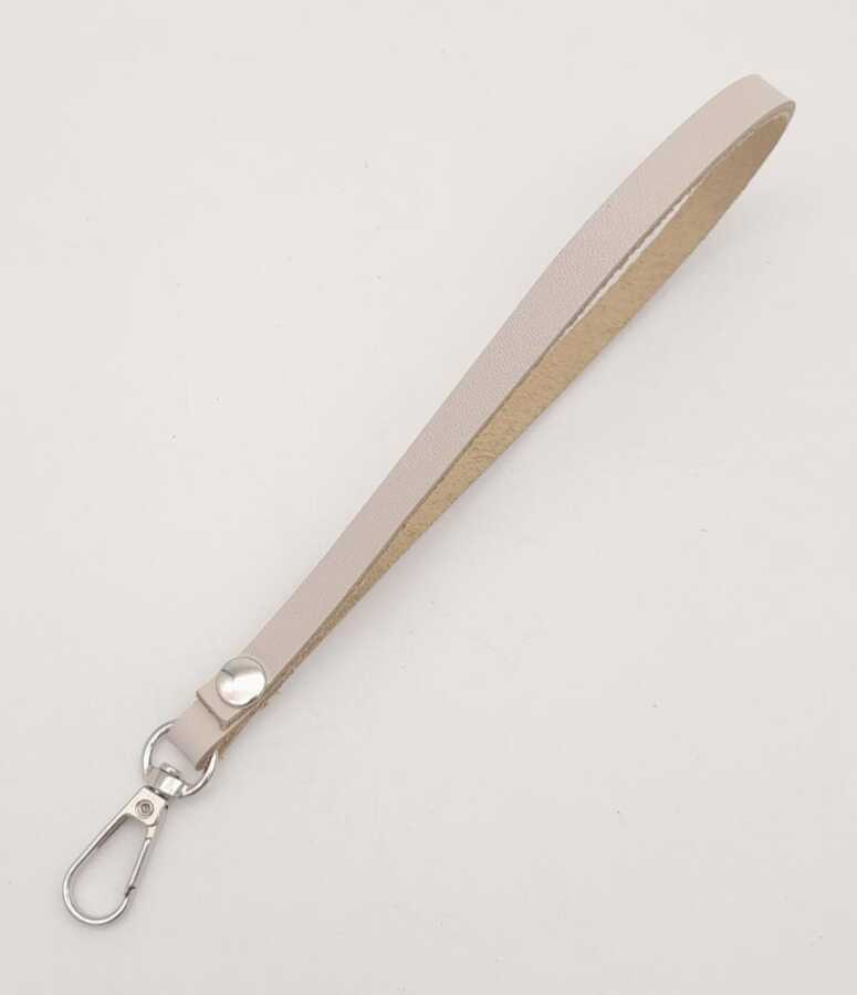 Angel Çanta Aksesuar Gerçek Deri Bej Renk Elcik Gümüş Metalli
