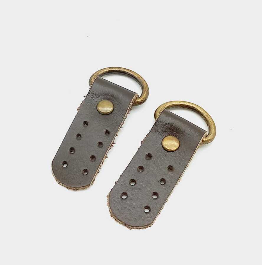 Genişlik: 2,3 cm Uzunluk: 7,5 cm Gerçek deriden üretilmiştir. Çift olarak satılır Örgü çantaların saplarının çantaya tutturulmasında kullanılır.