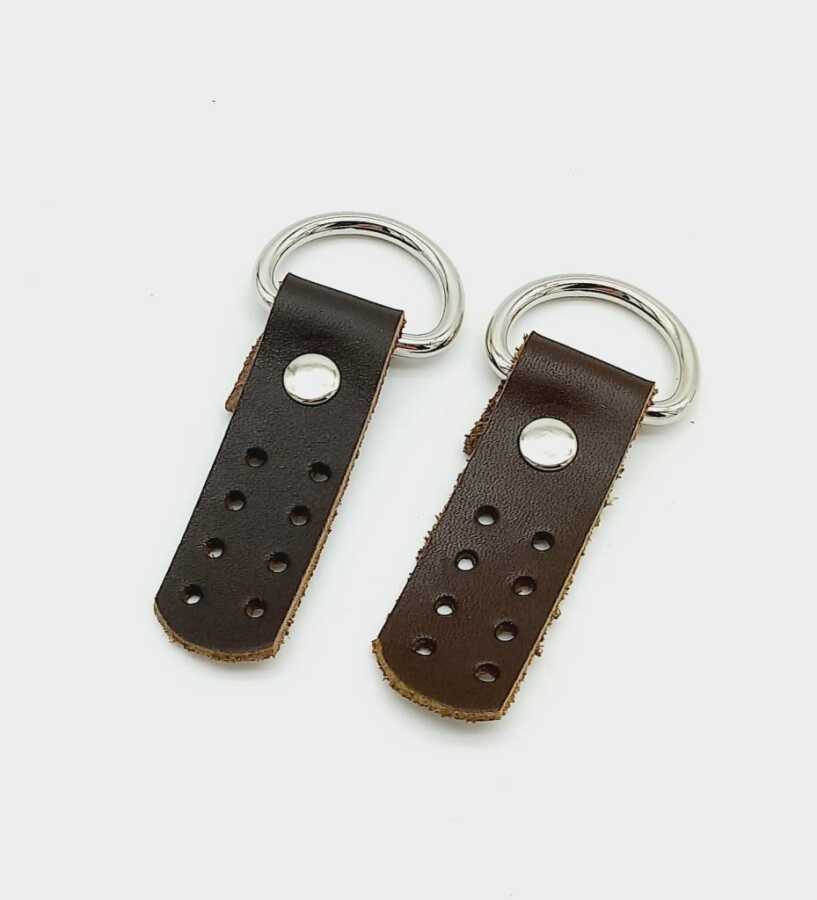 Genişlik: 2,3 cm Uzunluk: 7,5 cm Gerçek deriden üretilmiştir. Çift olarak satılır Örgü çantaların saplarının çantaya tutturulmasında kullanılır.