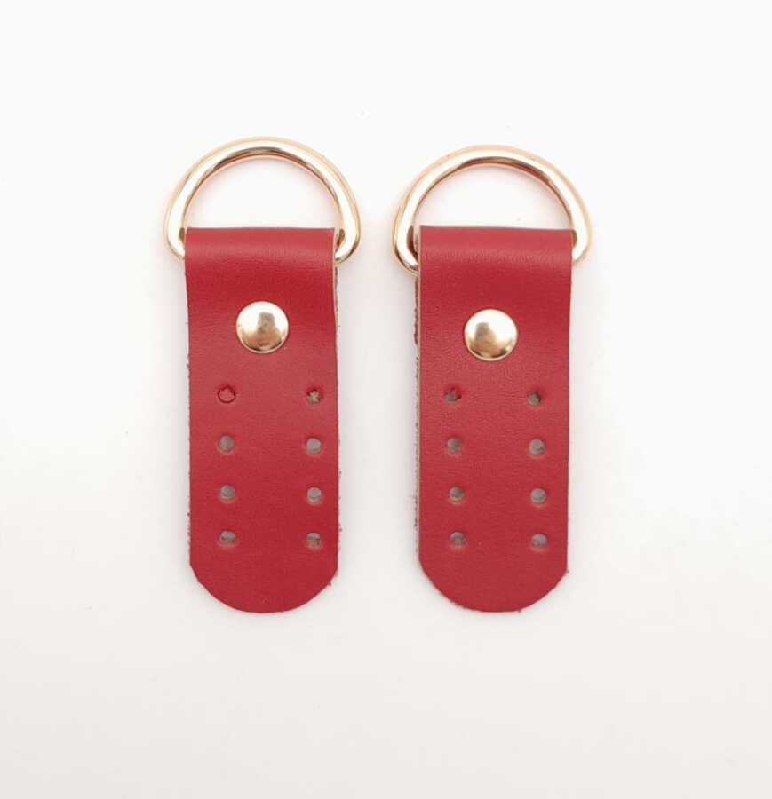 Angel Çanta Aksesuar Gerçek Deri Sapucu (Böce) Kırmızı Renk Light Gold Metalli
