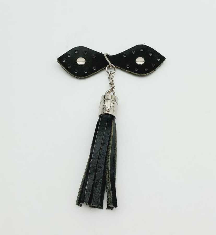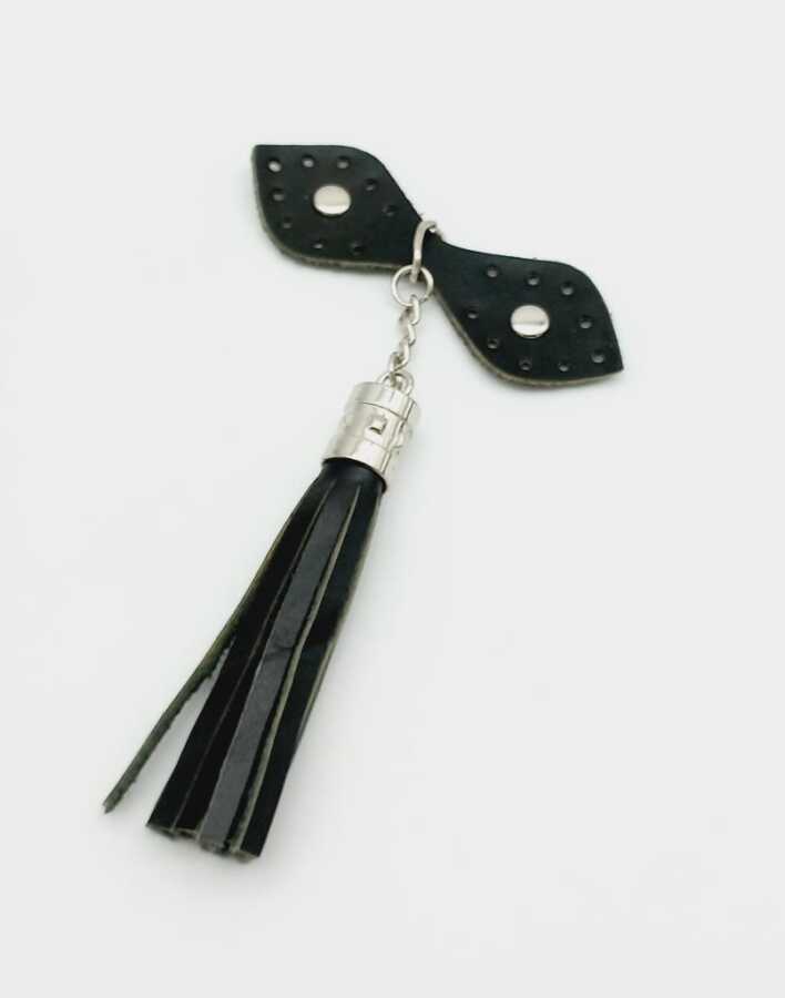 Angel Çanta Aksesuar Gerçek Deri Siyah Cluch Püskül Gümüş Metalli