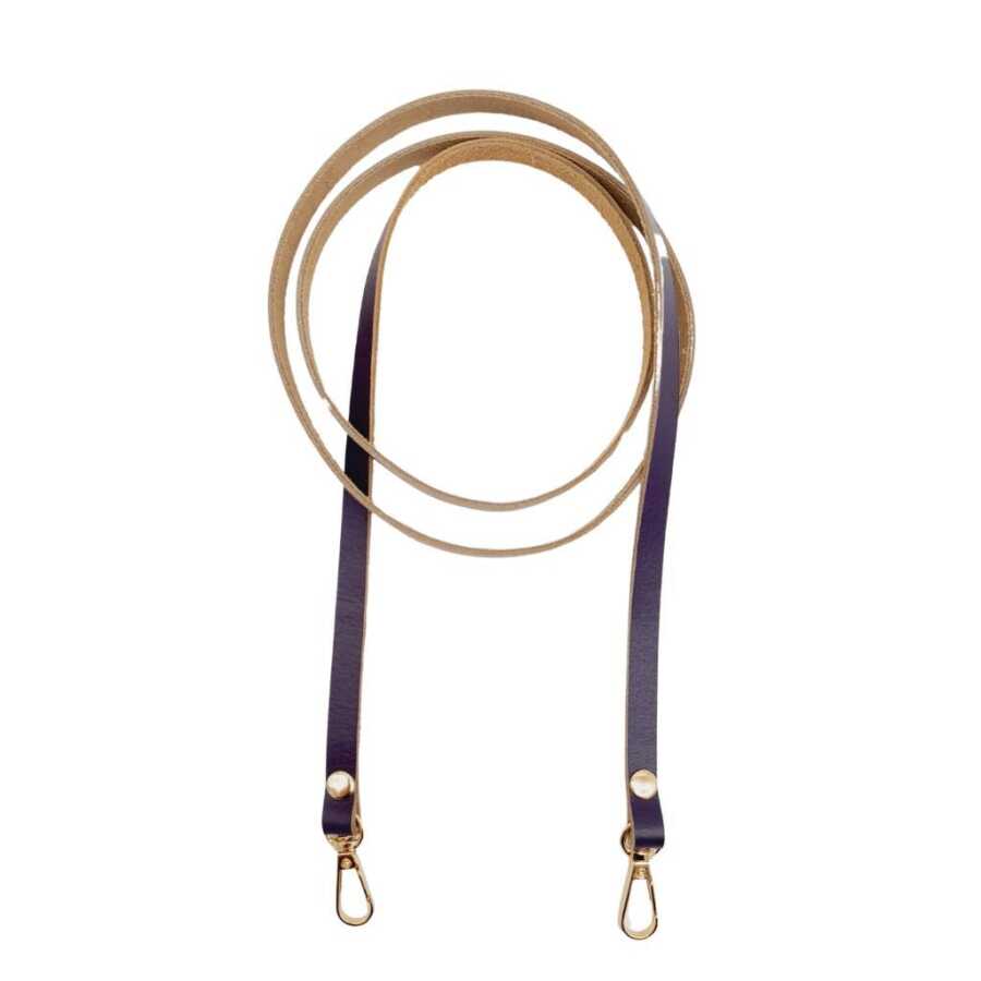 Angel Çanta Aksesuar Gerçek Deri Spagetti Model Mor Renk Light Gold Metal Çanta Sapı