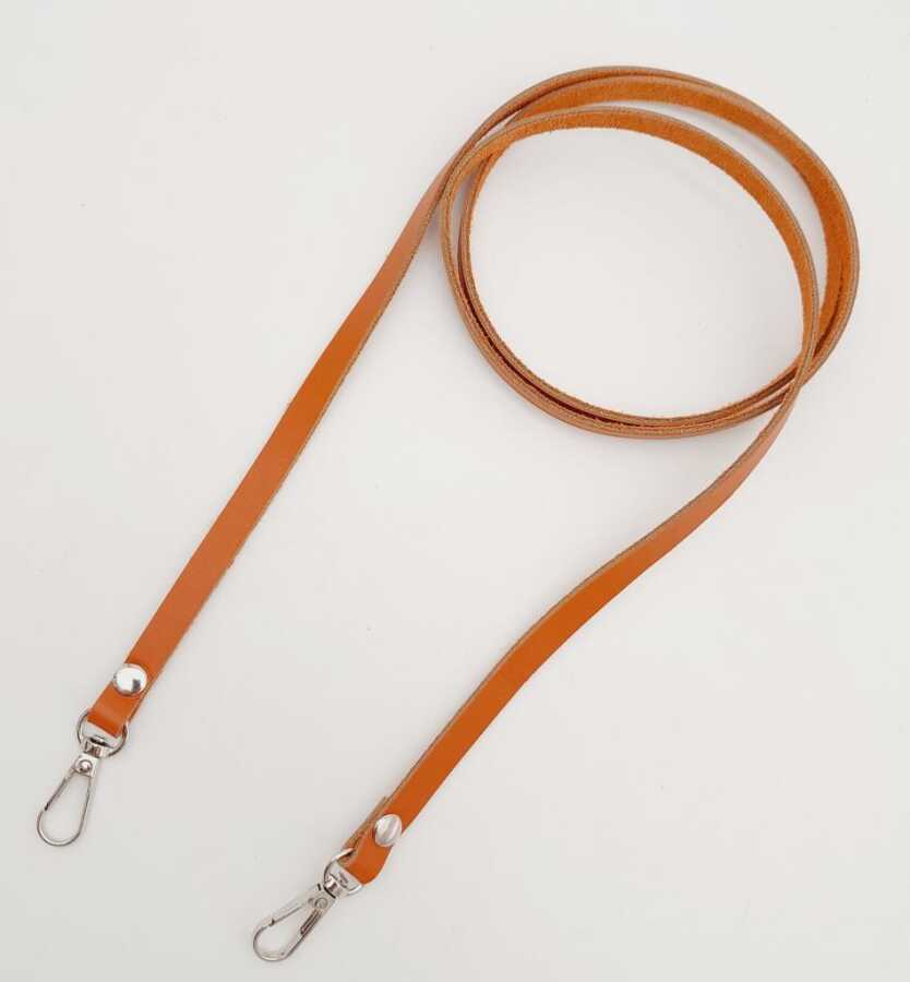 Angel Çanta Aksesuar Gerçek Deri Spagetti Model Turuncu Taba Gümüş Metal Çanta Sapı