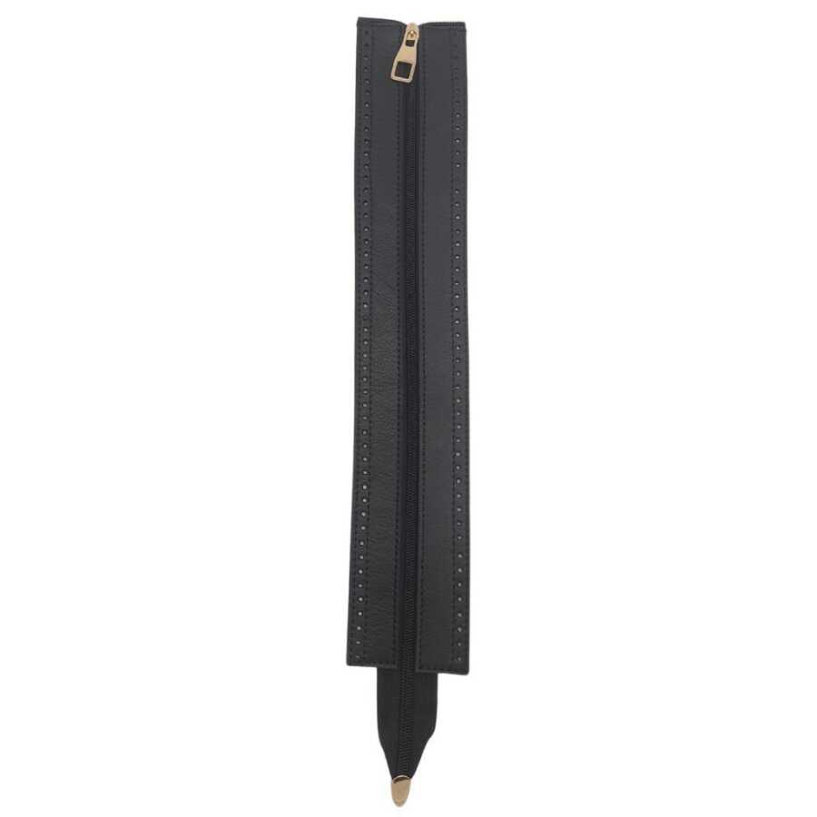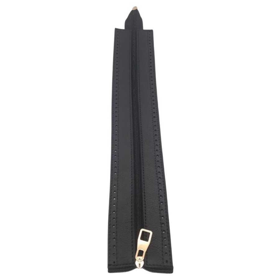 Deri Kısım Uzunluk: 40 cm Deri Kısım Genişlik: 7 cm Metal Rengi: Light Gold Gerçek deriden üretilmiştir. Kenarlarında delikler tığ ile monte etmek için tasarlanmıştır. Örgünün kendi ipi ile dikerek de montaj yapılabilir.