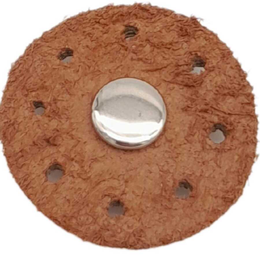 Çap: 3 cm Metal Renk: Gümüş Dikme delikleri mevcuttur. Gerçek Deriden üretilmiştir. 1 adet Fiyatıdır.