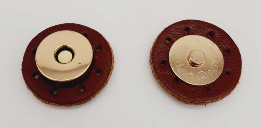 Angel Çanta Aksesuar Gerçek Derili Mıknatıslı Çıtçıt Kızıl Kahve Light Gold Metalli