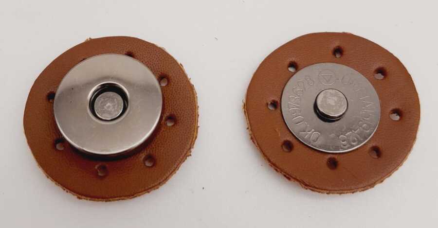 Çap: 3 cm Dikilebilmesi için kenarlarında delikleri açılmıştır. Gerçek deri kullanılmıştır Mıknatıslı Çıtçıt Kapakların içine tutturmak için kullanılabilir hoş bir görüntü olur ve mıknatıs olarak kapağın kapalı kalmasını sağlar.