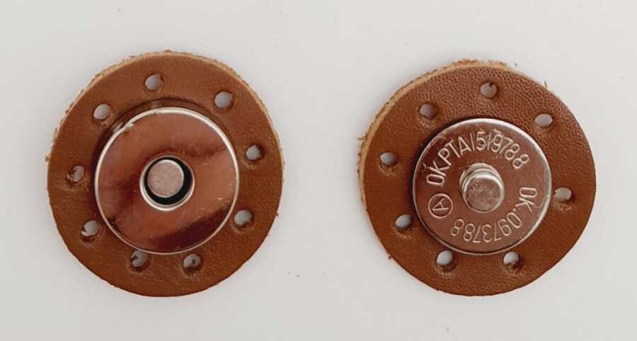 Çap: 3 cm Dikilebilmesi için kenarlarında delikleri açılmıştır. Gerçek deri kullanılmıştır Mıknatıslı Çıtçıt Kapakların içine tutturmak için kullanılabilir hoş bir görüntü olur ve mıknatıs olarak kapağın kapalı kalmasını sağlar.