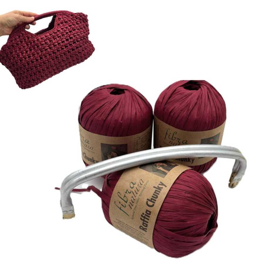 Angel Çanta Aksesuar Rafya Ve Bordo Renk Zincirli Sap Çanta Seti