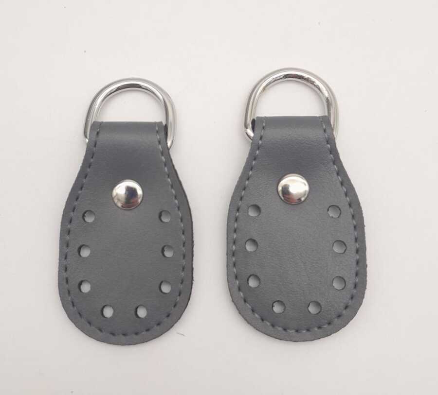 Angel Çanta Aksesuar Gri Çift Kat Dikişli Suni Deri Sapucu Böce Gümüş Metalli