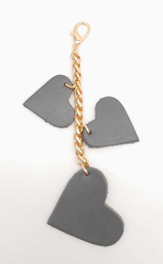 Angel Çanta Aksesuar Gri Gerçek Deri Kalpli Süs Püskül Light Gold Zincirli