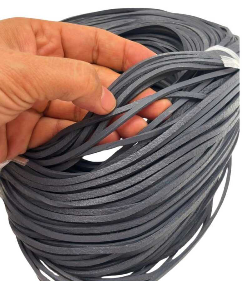 Angel Çanta Aksesuar Gri Renk Gerçek Deri 3 mm Şerit Deri İp 2 Metre