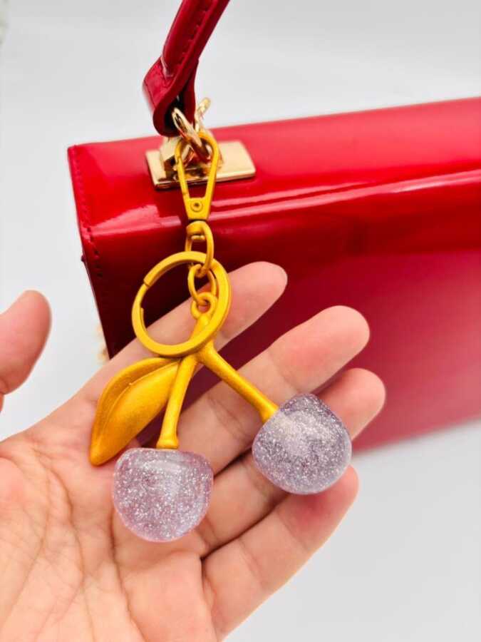 Angel Çanta Aksesuar Kırmızı Kiraz Anahtarlık , Çanta Süsü Antik- Gold Metalli