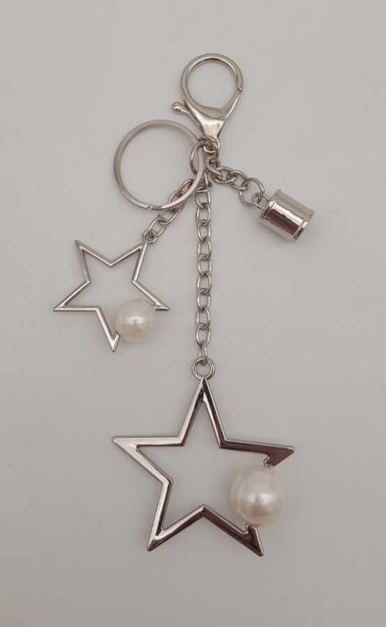 Uzunluk: 15 cm En Büyük Yıldız Genişlik: 5,5 cm Renk: Gümüş Kancadan çantanıza takabilirsiniz. Örgü çanta ve diğer tüm çantalara uygundur. Çantalarınızın şıklığına şıklık katar.
