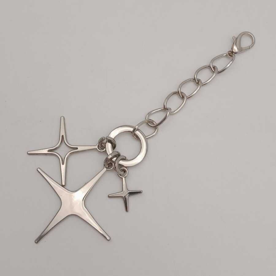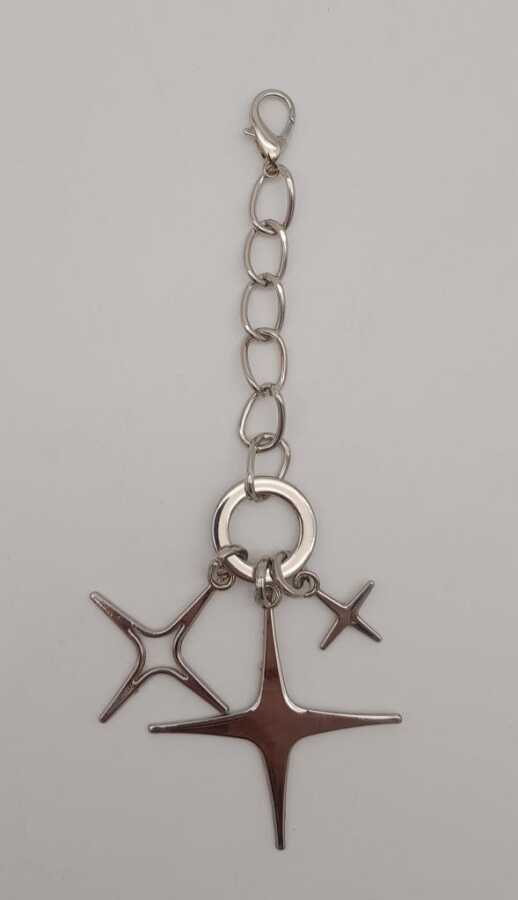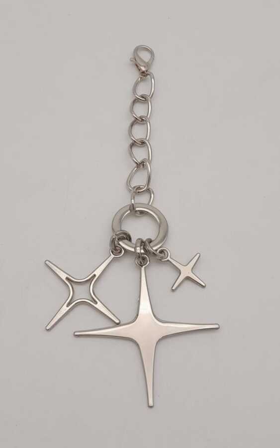 Uzunluk: 17 cm En Büyük Yıldız Genişlik: 5,5 cm Renk: Gümüş Kancadan çantanıza takabilirsiniz. Örgü çanta ve diğer tüm çantalara uygundur. Çantalarınızın şıklığına şıklık katar.
