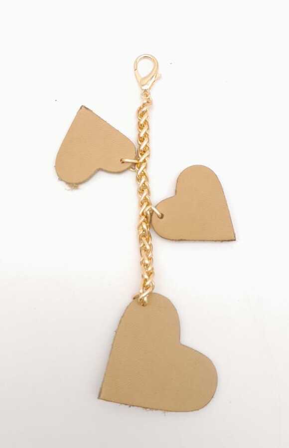 Angel Çanta Aksesuar Ham Doğal Gerçek Deri Kalpli Süs Püskül Light Gold Zincirli