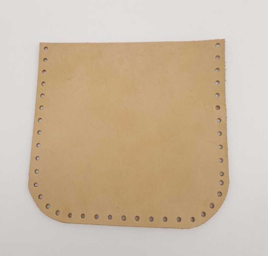 Angel Çanta Aksesuar Ham Doğal Renk Gerçek Deri 12x12 cm Oval Kenar Cep