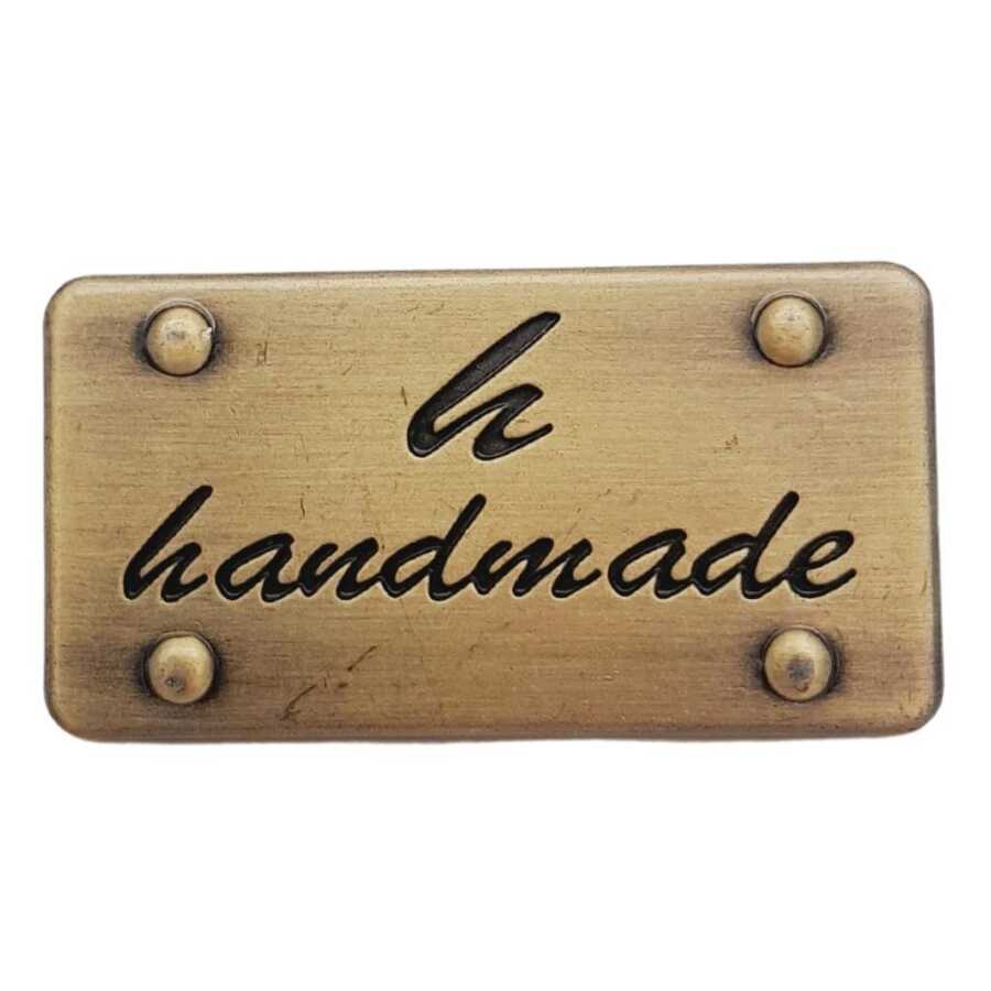 Angel Çanta Aksesuar Handmade Yazılı Metal Etiket 3.7x2 cm Plaka Süs Antik Renk
