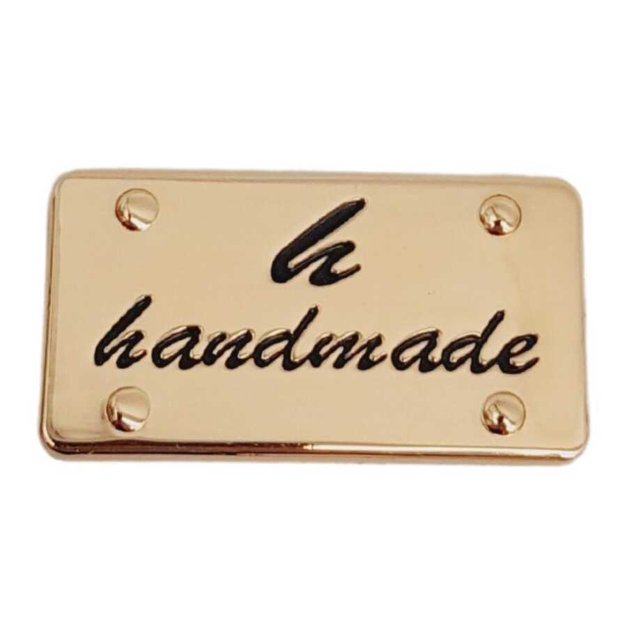 Angel Çanta Aksesuar Handmade Yazılı Metal Etiket 3.7x2 cm Plaka Süs Light Gold Renk