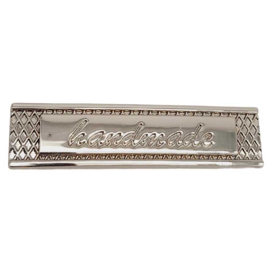Angel Çanta Aksesuar Handmade Yazılı Metal Etiket 4x1 cm Plaka Süs Gümüş Renk